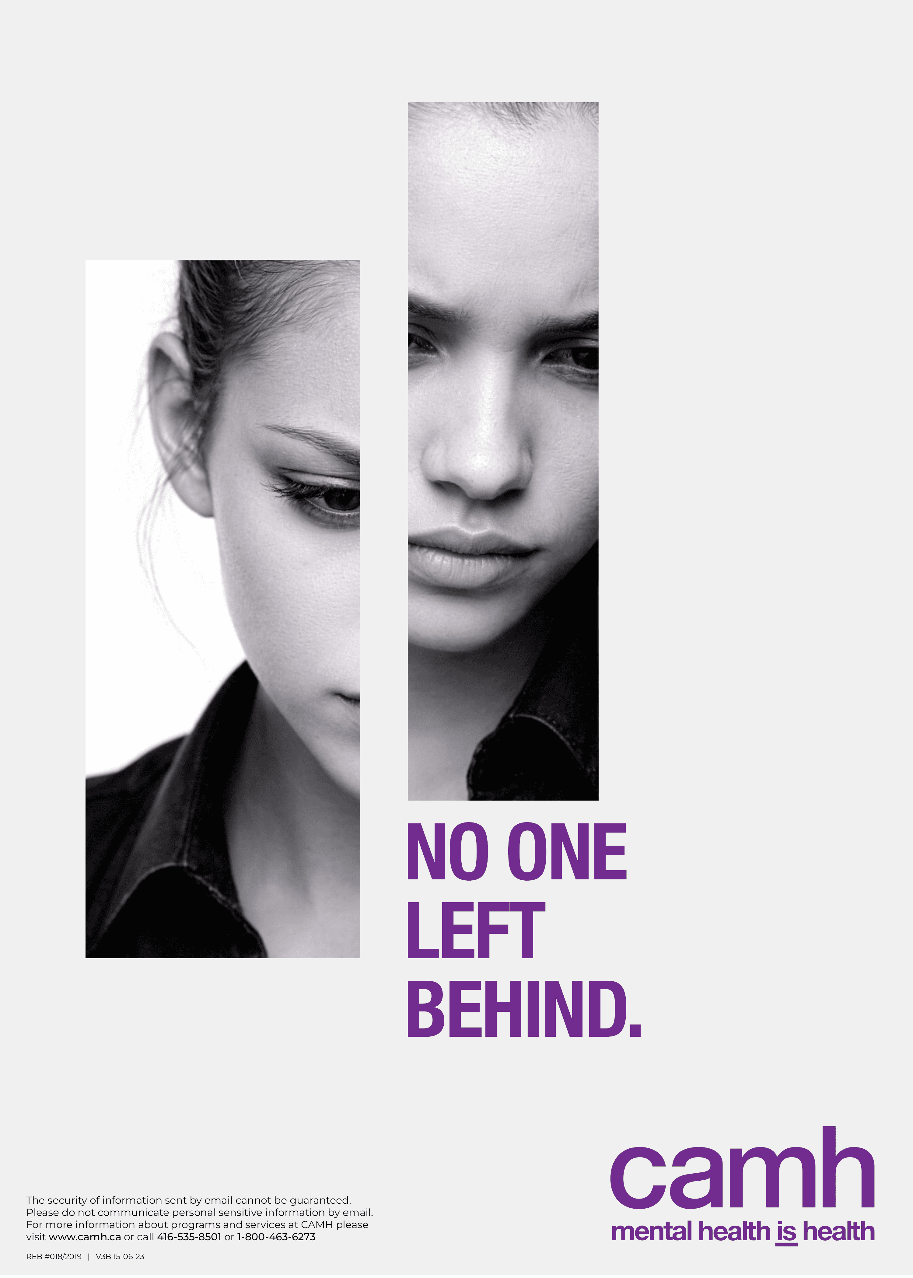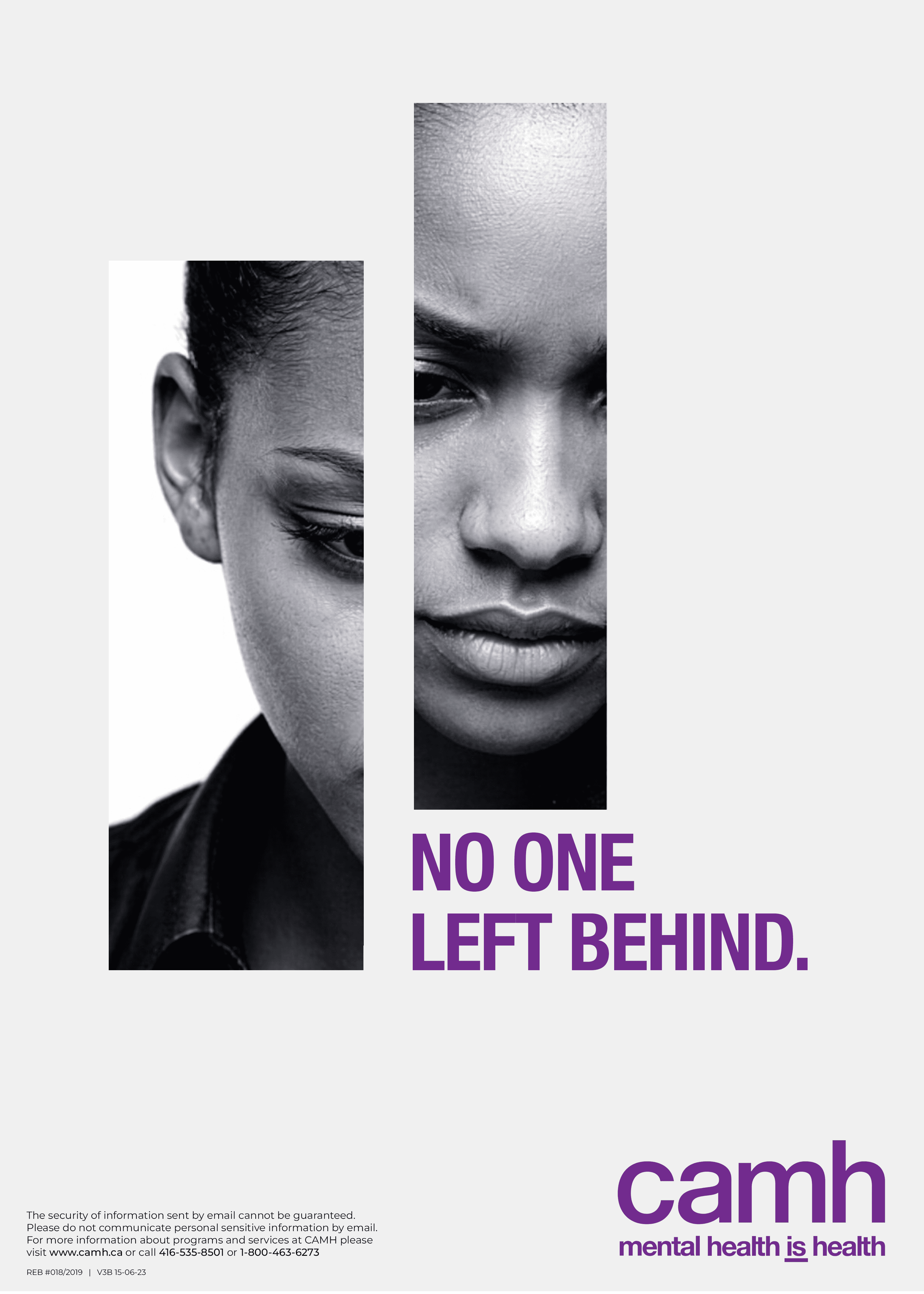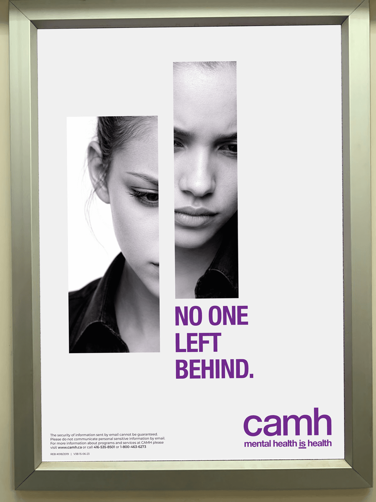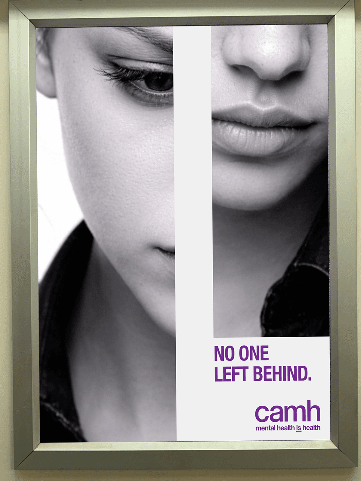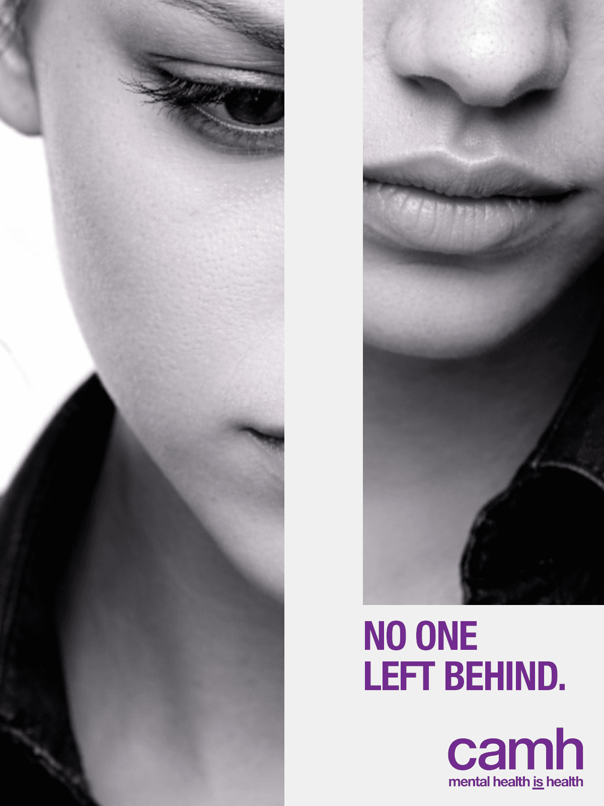 The study naturally evolved into campaign thinking. Using what I learned—and leaning into CAMH’s established brand language—I developed No One Left Behind, an original campaign concept that revisits a familiar theme through a new lens. Built around "fractured" imagery, strong typographic statements, and a simple campaign identity, the series was designed to be direct, memorable, and impactful—each piece standing alone or working as part of a larger system.